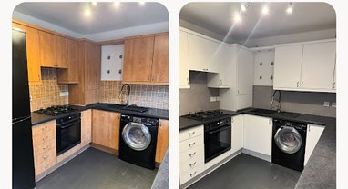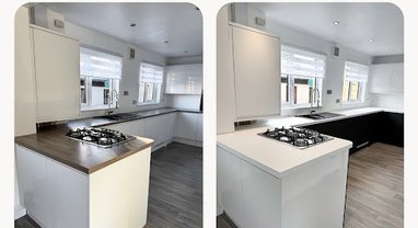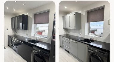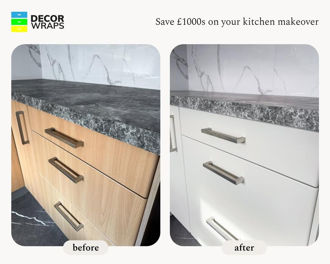 Decor Wraps is a Glasgow-based company offering high-quality kitchen vinyl wrapping services across Scotland. We specialise in modern kitchen transformations that are fast, affordable, and stylish—typically completed in just one day. Our vinyl wrapping solutions for kitchen units, countertops, and more are up to 70% cheaper than traditional renovations, making us a smart alternative to full replacements. With over 1,200 happy customers in Glasgow and across Scotland, we’ve built a reputation for premium finishes, expert craftsmanship, and customer satisfaction. Whether you want to refresh your space or fully upgrade your kitchen, our kitchen wrapping experts use only top-grade materials to ensure durability and a modern look. Join the gro